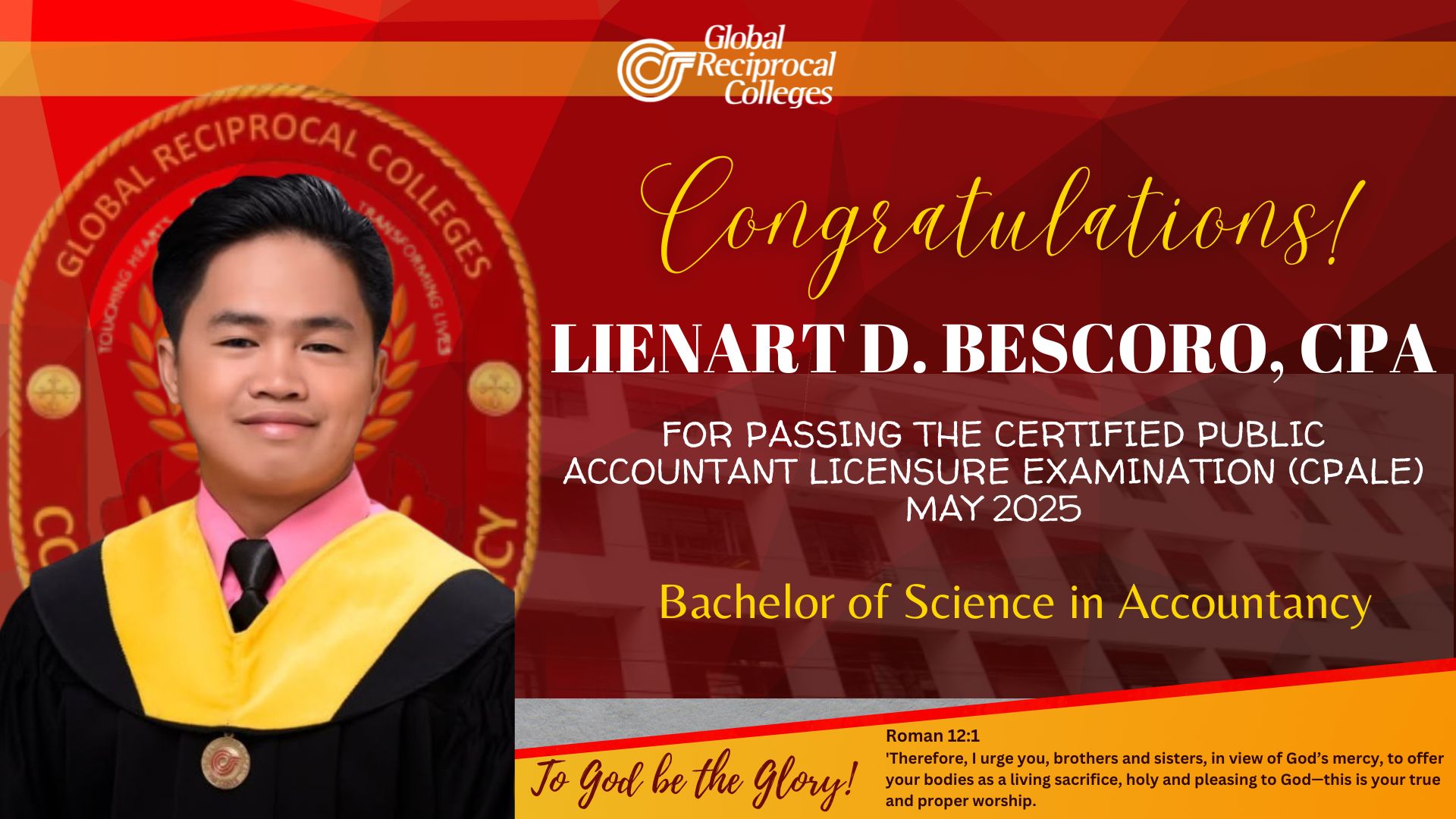 And that’s what I see in all of you. You’ve been transformed—not just by the knowledge you gained here at Global Reciprocal College—but by every all-nighter, every group project, every doubt you overcame, and every belief you deepened. You are no longer the same students who walked into your first day of class. You are thinkers, creators, risk-takers—leaders.
